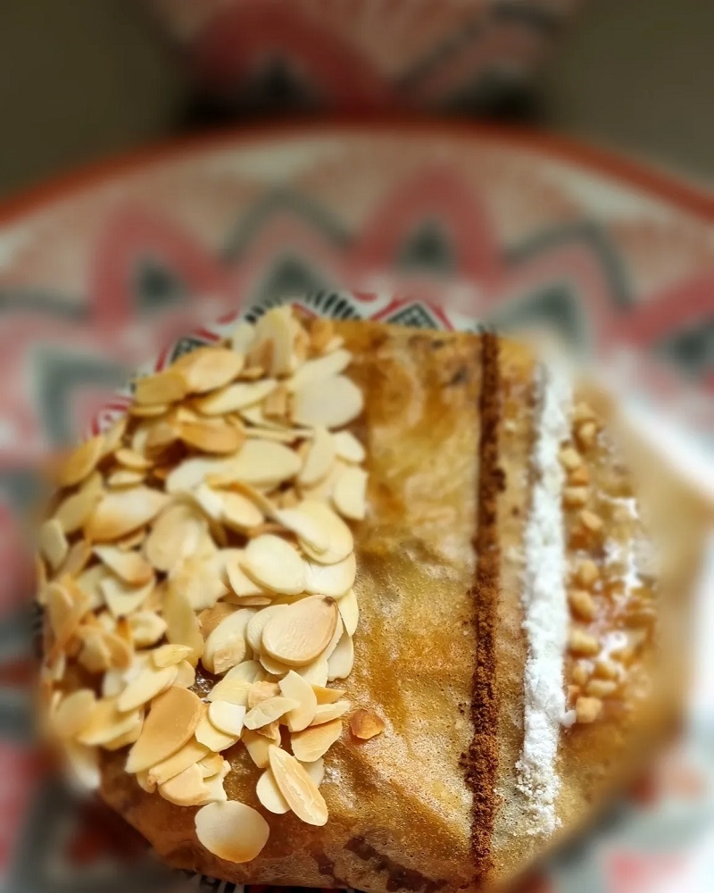 eau de fleurs d’oranger, amandes effilées Miel et épices