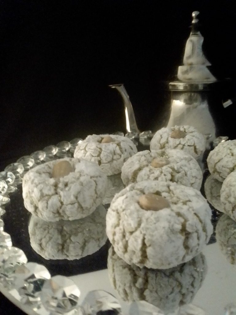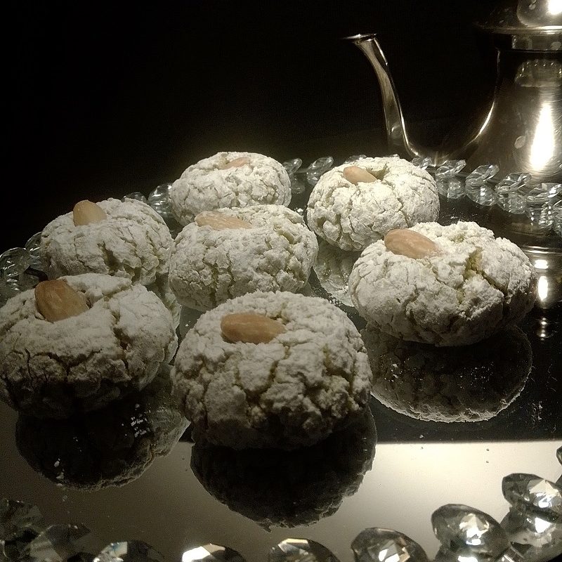 Petit four algérien, croquant au coeur fondant, à base de poudre d’amandes, sucre glace et qui se parfume à l’infini ( soit eau de fleurs d’oranger, soit vanille, soit zeste de citron…)