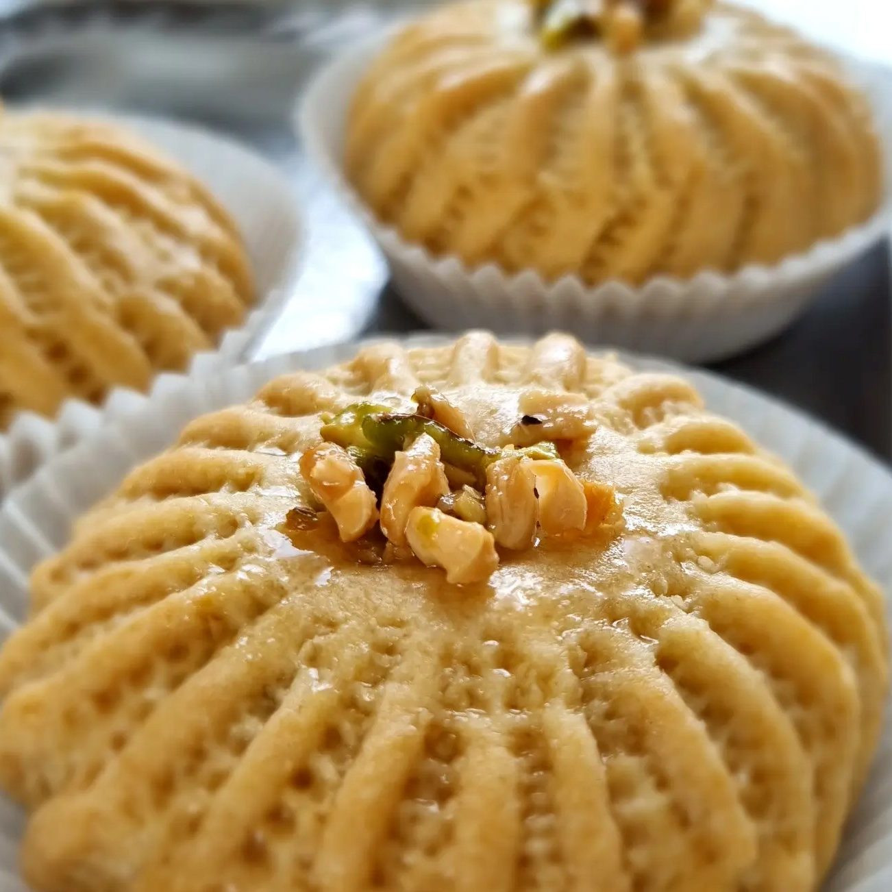 On craque pour cette douceur à base d’amande, de zeste de citron, d’eau de fleurs d’oranger enveloppée d’une pâte fondante aux éclats de Pistaches, Amandes et Miel…
